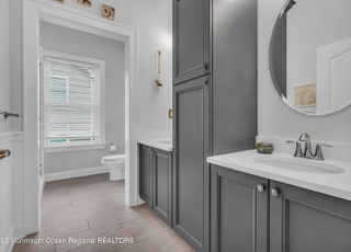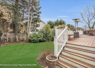 Don't Miss THIS ONE. Built in 2007, this gorgeous, eco-friendly 3/4 bedrooms 2.5 baths colonial checks off all the boxes. You will be welcomed by 9ft ceilings, decorative molding, a grand stair-case, tons of natural light and gorgeous wood floors through-out The first floor features an open concept eat-in kitchen with custom cabinetry, SS appliances, large pantry, breakfast bar, and a built-in desk nook. Separate living room and family room with gas fireplace and sliding glass doors provide access to a large deck, overlooking fenced in backyard, garden, and fire pit making this the perfect home for entertaining. Second level features 3 oversized bedrooms with large custom closets including the master suite with his and her closets, balcony, beautiful ensuite bathroom with double sinks, shower stall and soaking tub. Recently renovated Jack and Jill bathroom and upstairs laundry complete the level. Fully finished basement offers a walk in cedar closet, lounge area with built-ins, bedroom/office space, and large storage space. An oversized one car garage with high ceilings complete this home. Anderson energy star windows, NEWER Tankless Waterheater, Energy Star certified makes this home sustainable. All within walking distance of charming seaside town's main street, elementary school and SeaStreak Ferry for easy commuting. Just a quick drive to famed beaches of the Jersey shore and downtown Red Bank.